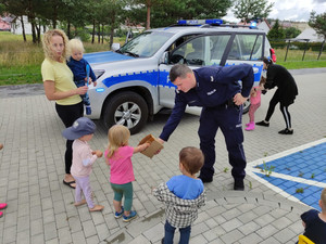 Dodatkowo policjanci w czasie letnim odwiedzają tych najmłodszych. Tym razem zawitali do żłobka w Studzienicach, gdzie maluchy chętnie oglądały radiowóz i policyjne wyposażenie, zaś profilaktyk apelował do ich rodziców, aby uważnie pilnowali swoje pociechy podczas letniego wypoczynku.