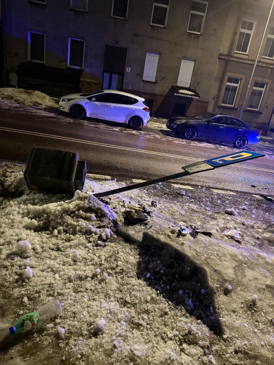 Przejeżdżający ulicą Dworcową w Bytowie policjanci patrolu zauważyli przewrócony znak, betonowy śmietnik i wiele porozrzucanych po drodze plastikowych i szklanych samochodowych elementów. Wszystko wskazywało, że kierowca chwilę wcześniej dokonując uszkodzeń uciekł z miejsca. Patrolując dalsze ulice funkcjonariusze dostrzegli uszkodzony samochód, a w nim mężczyznę, który na widok radiowozu szybko przesiadał się zza kierownicy na fotel pasażera. Nieudolnie próbował też ukrywać swoją obecność za fotelami samochodu. Gdy policjanci zainterweniowali wobec mężczyzny, nie potrafił on racjonalnie wytłumaczyć co robi w danym miejscu. W kieszeni miał kluczyki od samochodu i był zupełnie nietrzeźwy. Badanie wykazało ponad 2,5 promila alkoholu w jego organizmie.