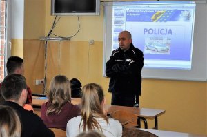 Wczoraj bytowscy policjanci spotkali się z uczniami klasy mundurowej Zespołu Szkół Ponadgimnazjalnych. Mundurowi opowiadali o swojej pracy i jej zaletach. Wskazali, że kandydat musi m.in wykazywać się dobrą opinią, być wysportowany, odporny na stres i zmienne warunki pracy, a wykonując swoje obowiązki i dbając o bezpieczeństwo ludzi niejednokrotnie narazi swoje zdrowie i życie. Jednak dobrze wykonana praca przynosi wiele zadowolenia i satysfakcji.