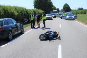 Jak wstępnie ustalili pracujący na miejscu policjanci, kierujący motorowerem na prostym odcinku drogi skręcając w lewo, w drogę gruntową najprawdopodobniej nie zachował szczególnej ostrożności i nie ustąpił pierwszeństwa kierującemu audi, który go wyprzedzał. W wyniku zderzenia ranny został 78 – letni kierowca jednośladu. Mężczyzna został przewieziony do szpitala. Kierującemu samochodem osobowym oraz pasażerom nic się nie stało.