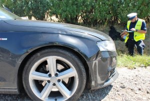 Policjanci zatrzymali prawo jazdy 46 – letniemu kierowcy alfy romeo. Jak wstępnie ustalili mundurowi mężczyzna najprawdopodobniej nie zachował bezpiecznej odległości od jadącego przed nim samochodu i uderzył w drzewo. Siła uderzenia okazała się tak duża, że alfa romeo odbiła się od drzewa i spadła na dach poprzedzającego ją volkswagena. Sprawa zostanie przekazana do sądu. Policjanci apelują o ostrożność na drodze.